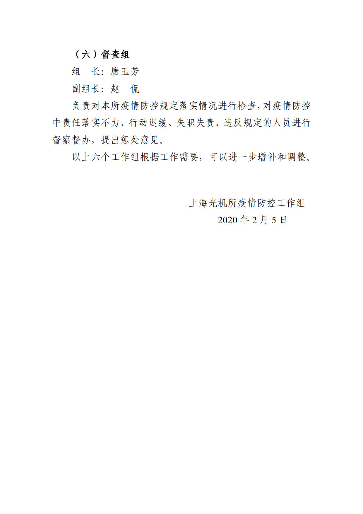 上海光机所调整完善疫情防控领导小组和工作小组的通知(疫情防控010号)
