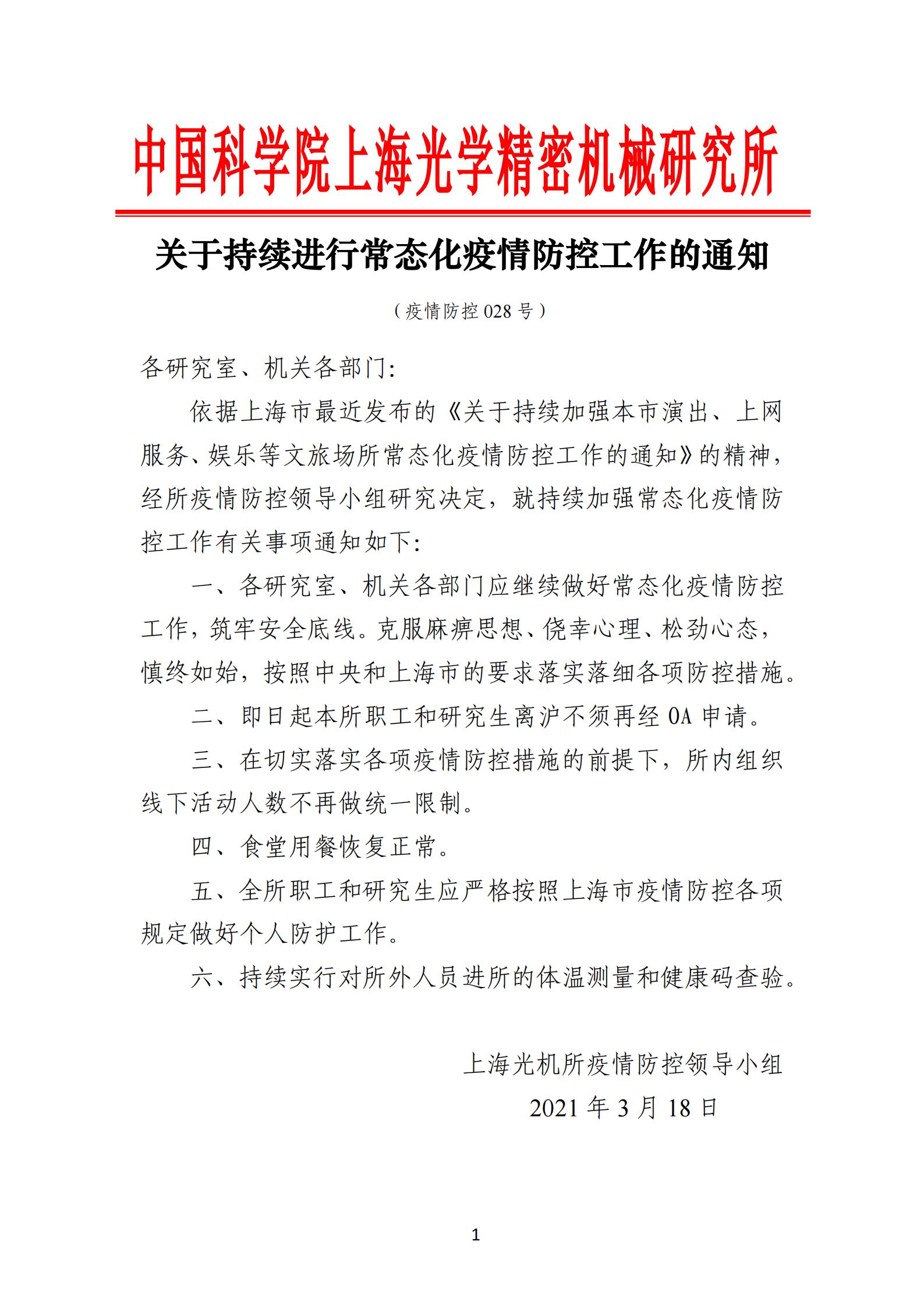 关于持续进行常态化疫情防控工作的通知(疫情防控028号)