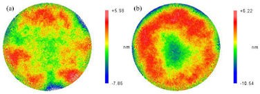 图3 本文方法测量结果与Zygo公司测量结果之间的波面残差结果:(a)标准透射平晶A(b)标准反射平晶B