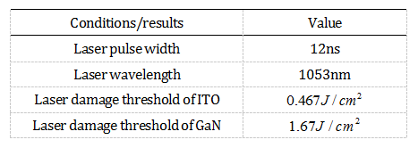 表1ITO和氮化镓的损伤阈值测量结果