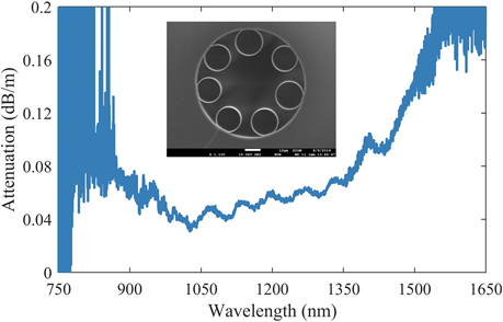 图1 反谐振空芯光纤传输损耗测量图(插图为反谐振空芯光纤电镜图)
