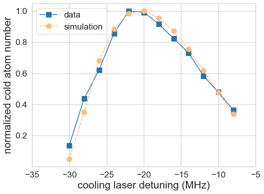 图2 通过测定冷却激光失谐量与冷原子数的关系计算腔内漫反射光场的有效饱和因子