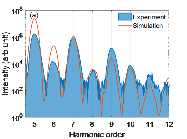 图1. 模拟的高次谐波光谱再现了实验观测。