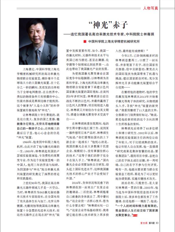 【紫光阁】“神光”赤子—追忆我国著名高功率激光技术专家、中科院院士林尊琪