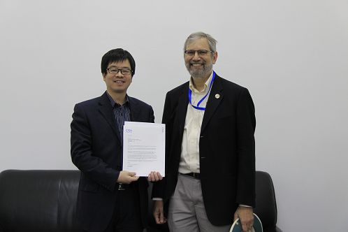 访问期间,Bucksbaum代表美国光学学会正式通知并祝贺上海光机所李儒新所长于2014年10月20日举行的OSA执行委员会会议上当选为美国光学学会会士(OSA Fellow)。OSA书面通知函中肯定了李儒新研究员在超高强度飞秒激光,激光尾波场加速,高次谐波产生和成丝非线性光学方面的杰出贡献。李儒新还受中国光学学会的委托,以中国光学学会副理事长的身份与OSA代表团讨论了中国光学学会和美国光学学会的合作事宜。Liz Rogan和Elizabeth Nolan与上海光机所“中国激光杂志社”讨论了合作出版学术期刊事宜。 (所办公室供稿)
