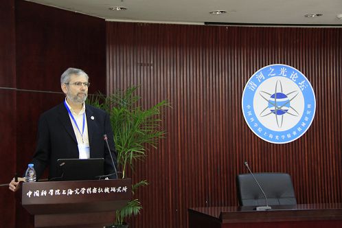 Bucksbaum教授还应邀在上海光机所去年发起的高层次系列学术讲座活动——“清河之光”论坛上作了题为“电子、原子和分子的超快量子控制(Ultrafast Quantum Control of Electrons, Atoms, and Molecules)”报告。上海光机所程亚研究员主持了该论坛活动。Bucksbaum教授报告的主要内容是关于原子和小分子在飞秒或更短时间尺度上的内部运动的量子控制,其时间尺度是由它们的大小和电子结合能决定的,最外层电子的结合能是几十伏每埃,而内层电子是千伏或千伏以上,可以在阿秒的时间尺度上测量。Bucksbaum教授还阐述了他最近的实验和一些新的概念,其中涉及如何利用激光场的时间、光子能量和场强来理解电子、原子和分子之间的相互作用。他的工作中采用两种强场激光光源:强聚焦的红外激光可以在单光学周期内创造这些极端条件,并诱发亚飞秒的原子现象。这是高次谐波和阈上电离现象所涉及的光场。X射线自由电子激光器也可以产生这样的极端光场,但处于更高的振荡频率。这是超快内壳层电离和俄歇弛豫(Auger relaxation)过程涉及的光场。这两种类型的强场现象都产生了飞秒或亚飞秒时间尺度的动力学。报告之后,Bucksbaum教授和与会人员展开了热烈的学术讨论,并与上海光机所OSA学生分会代表就学生分会发展等问题进行了交流。