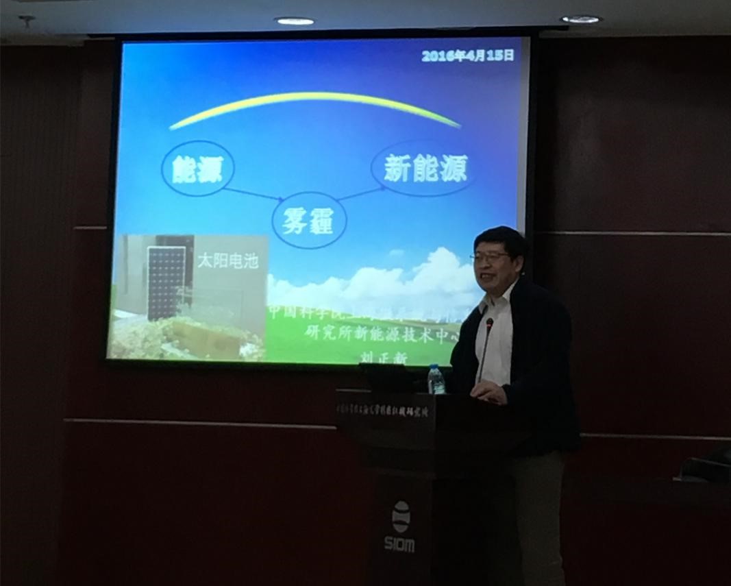 4月15日,在第58期“尚光学术沙龙”活动中,中科院上海微系统所新能源技术中心主任刘正新研究员作了题为“谈谈能源和雾霾”的学术研究报告。在报告中,刘正新由我国能源利用与雾霾现况出发,系统介绍了我国在能源领域的转变,对风能、水能、地热能等新能源的建设和利用现状,详细阐述了我国在以太阳能光伏为代表的新能源方面的发展与日本等发达国家对太阳能在家庭、汽车等方面的研究与应用进展。在报告结束后,刘正新对目前在太阳能等能源建设和利用存在的技术瓶颈问题进行了解答。刘正新的报告提纲挈领、内容广泛专业、数据翔实,语言风趣幽默而又引人沉思。整个讲座气氛积极活跃。