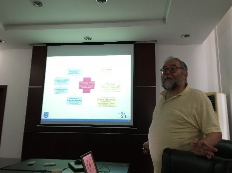 Werner Blau教授首先介绍了石墨烯及类石墨烯纳米材料的基本性质和发展现状,并从多个方面介绍了相关应用基础研究,并展示了二维纳米材料广泛的应用前景;张斌教授介绍了使用溶胶-凝胶反应、蒸馏-沉淀聚合和氧化接枝聚合等多样化的纳米结构构建方法,并介绍了器件的场诱导电荷转移机制;王俊研究员首先介绍了二维层状半导体材料的制备方法、性质及国际上基于此类材料的非线性光学研究进展,并着重介绍了上海光机所微纳课题组近年来在二维层状半导体超快非线性光学特性研究方面取得的科研成果和未来主要的研究方向。