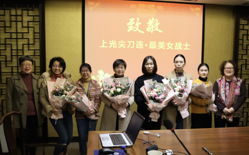 第一项议程为“上光尖刀连·最美女战士”主题分享,邀请上海光机所党委2019年度创建的三个尖刀连的优秀女职工代表,重大专项供货攻关尖刀连曹俊、林莹,BD导航任务攻关尖刀连杨燕、胡胜男,上海超强超短激光实验装置项目攻关尖刀连郑颖辉、陈慧娜,共同分享了女性在参与重大“急难险”科研攻关任务中的收获、蜕变和感悟。胡丽丽、李燕充分肯定了近年来全所女职工在巾帼岗位建功中取得的丰硕成果,并向六位“最美女战士”赠送了鲜花。