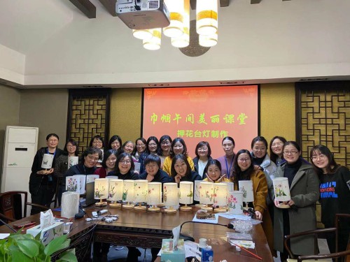 会后,利用午间休息时间,开展了“巾帼午间美丽课堂”,全体参会人员制作了押花台灯,丰富业余生活。(所妇委供稿)