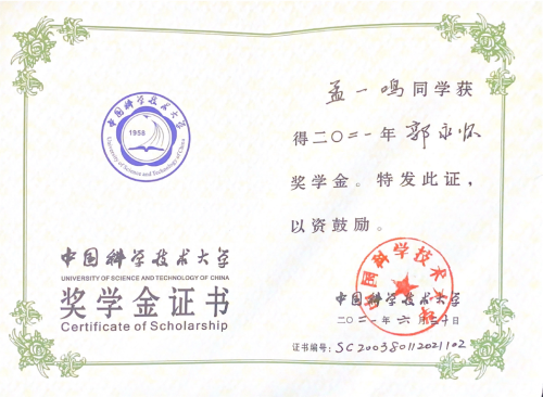 近期,中国科学技术大学(以下简称“中国科大”)组织了2021年度“郭永怀奖学金”的评审工作,共评选出4名代培生奖。上海光机所在中国科大代培的2020级硕士研究生孟一鸣荣获该奖项,这是我所首位荣获该奖的研究生。