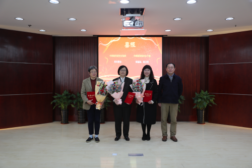 邵建达为获得“中科院先进妇女组织”荣誉称号的上海光机所妇女工作委员会主任侯霞、获得“中科院荣誉妇女干部”荣誉称号的胡丽丽、胡卫芳颁奖
