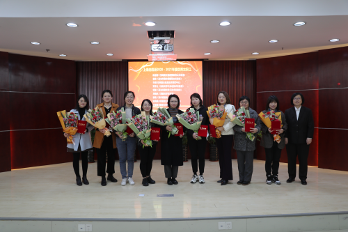 所妇委主任侯霞为获得“上海光机所优秀女职工”荣誉称号的陈慧娜、杨琳、许倩、范李立、钱敏、刘晓凤、徐艳、宋梅梅、王微微颁奖。