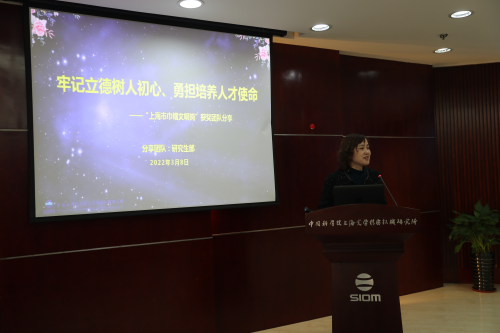 上海市巾帼建功标兵漆云凤研究员作《瞄准国家战略需求,研发全国产自主可控高能激光装备》报告。上海巾帼文明岗研究生部副主任金黎慧作《牢记立德树人初心,勇担培养人才使命》报告。