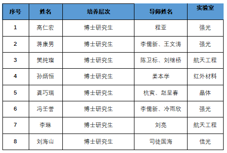 为助力研究所加强未来人才蓄水池建设,激发我院研究生的使命担当,表彰一批在科技攻关方面发挥攻坚克难精神的优秀学生,激励一批品学兼优、专心致研的优秀学生,中国科学院上海分院设立了“未来人才支持计划”项目。近期公布了2023年度“科技攻关新星”获奖名单,上海光机所共有8名研究生获奖。具体获奖名单如下: