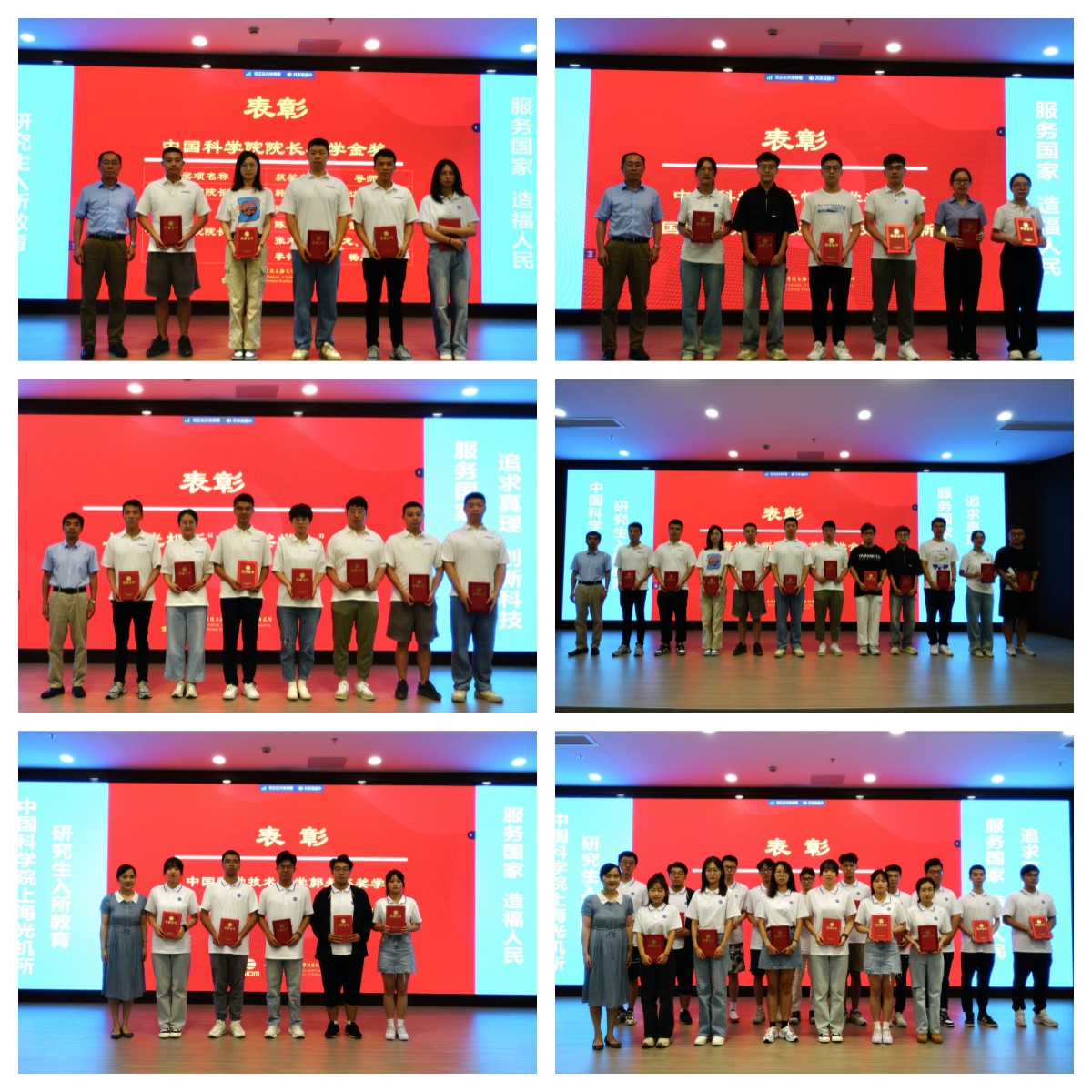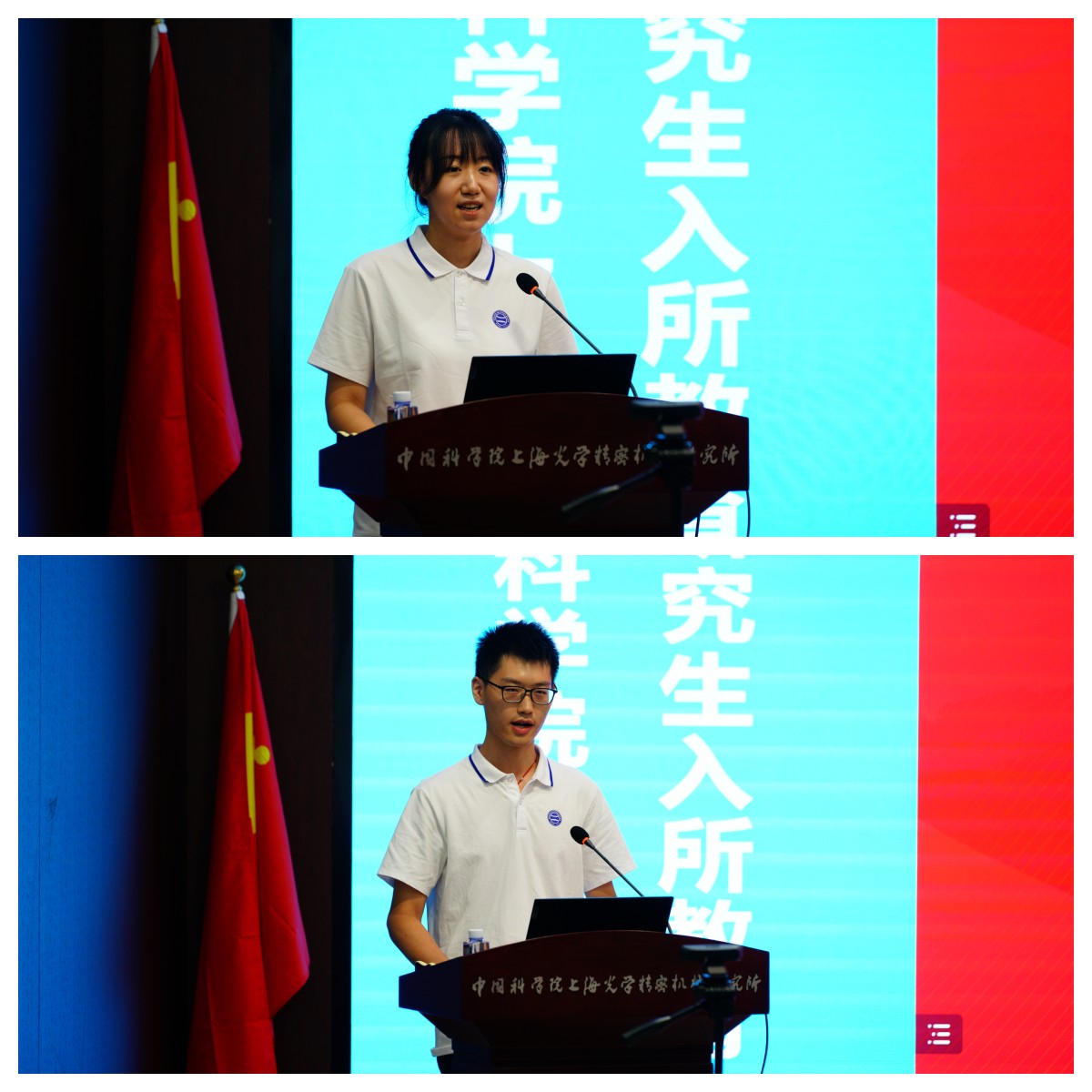 入所典礼上,邵建达书记、贺洪波部长和研究生部副主任金黎慧分别为荣获中国科学院院长奖学金、大恒光学奖学金、上海分院科技攻关新星、所级各类冠名奖学金和各级优秀学生荣誉称号的获奖者颁奖并表示祝贺。2022级直博生刘中慧、2022级中国科大硕士联培生王浩然作为新生代表发言。