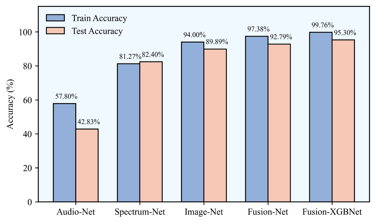 针对上述挑战,研究团队构建了一套多传感融合监测平台,同步采集焊接过程中的声信号、等离子体光谱信号及熔池图像信号,建立了涵盖四类熔深状态的多模态数据集。在此基础上,创新性提出一种神经网络(NN)与极端梯度提升(XGBoost)相结合的混合模型框架(Fusion-XGBNet)。该模型利用神经网络实现原始多源数据的自动特征提取与深度融合,并引入XGBoost对融合特征进行高效判别,最终通过自适应策略实现双模型输出协同决策,突破了传统方法对人工特征工程的依赖。