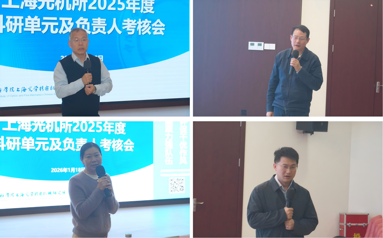为进一步夯实科研大部制改革成效,强化“有组织”科研,加快抢占激光领域科技制高点,2026年1月18日上午,上海光机所召开了2025年度科研单元及负责人考核会。所领导班子成员、党委委员、所务委员、纪委委员、科研单元负责人、职能支撑处室负责人、支部(总支)书记等参会。