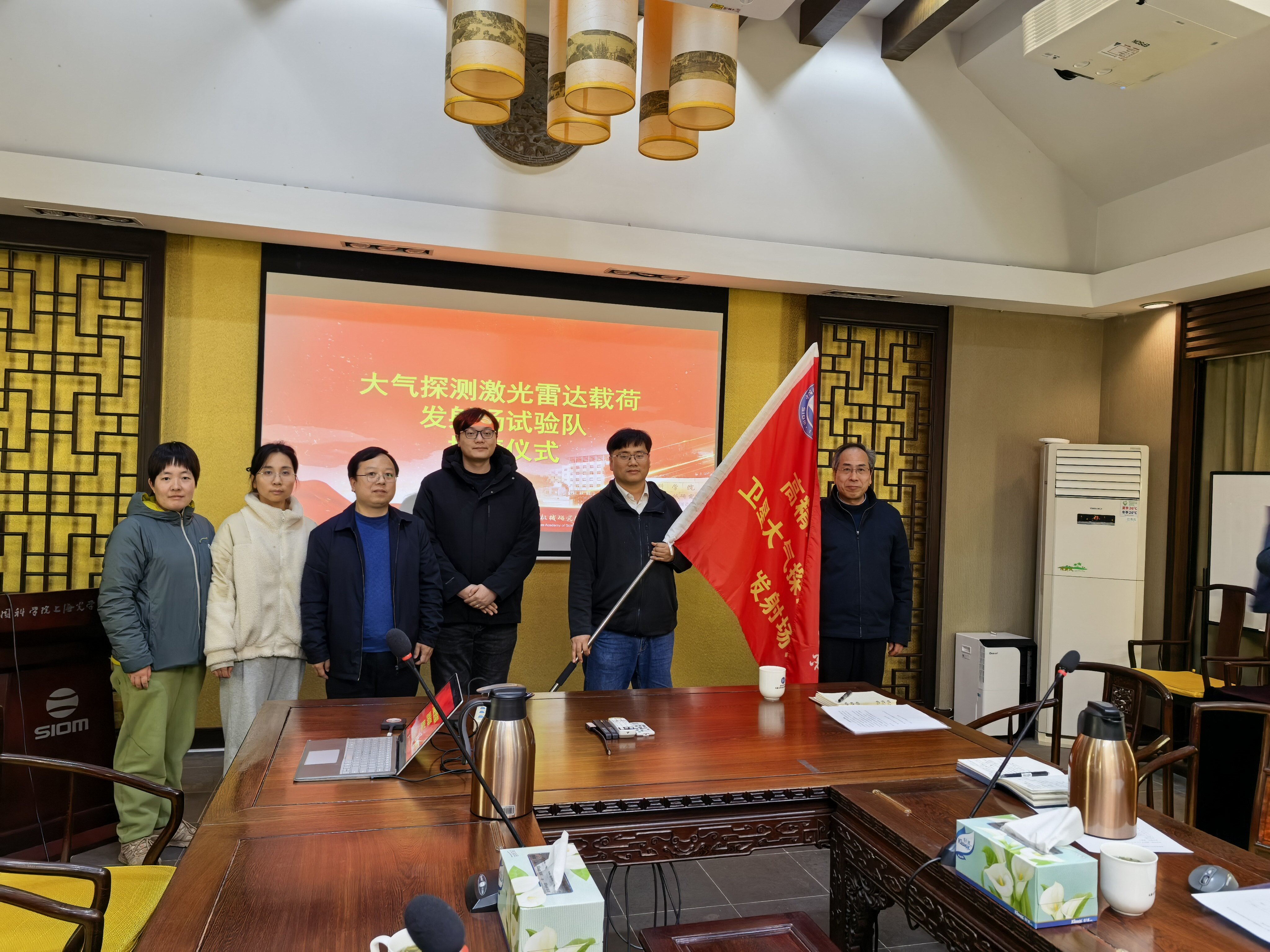 会上还举行授旗仪式,陈卫标书记向试验队授队旗。